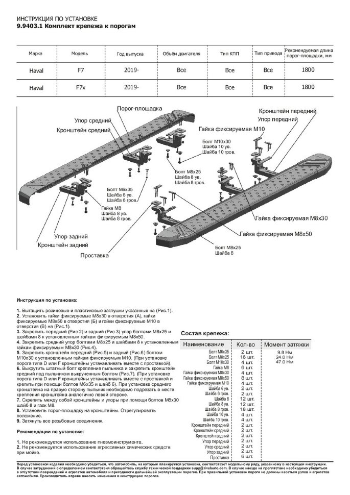 Однако, если в процессе установки порогов вы повредили крепеж или саму площадку, то у нас можно просто докупить поврежденный элемент отдельно.