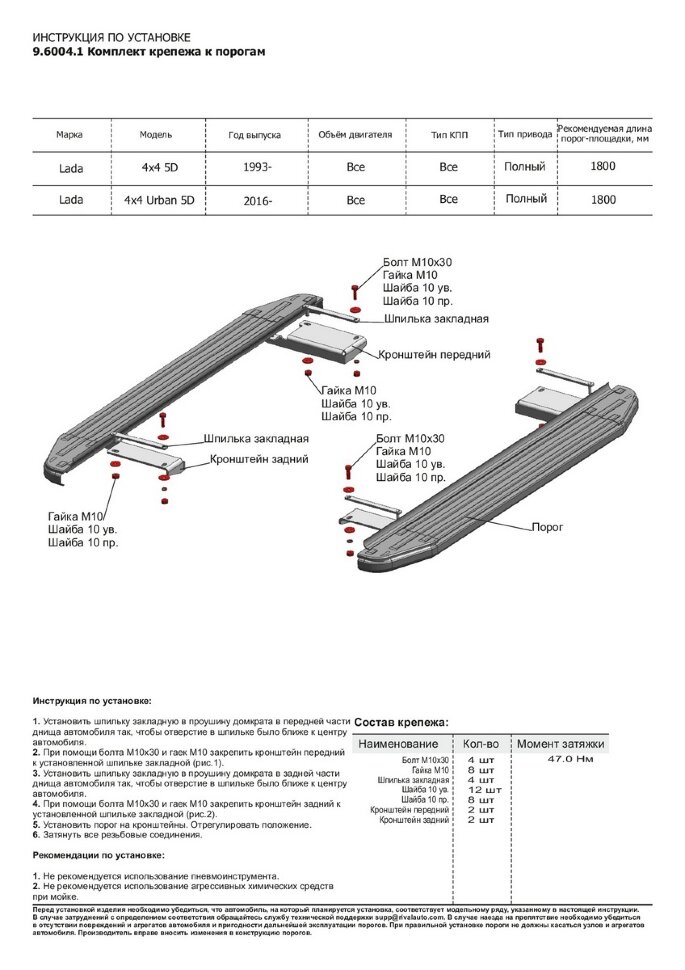 Однако, если в процессе установки порогов вы повредили крепеж или саму площадку, то у нас можно просто докупить поврежденный элемент отдельно.