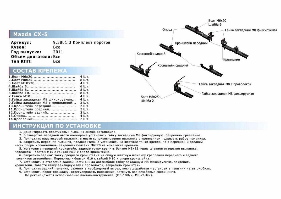 Однако, если в процессе установки порогов вы повредили крепеж или саму площадку, то у нас можно просто докупить поврежденный элемент отдельно.