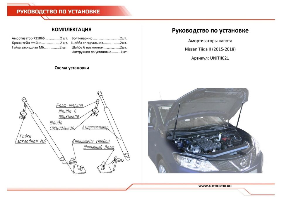 | Инструкция | Инструкция установки арт. UNITII021 ( Упоры капота ) |