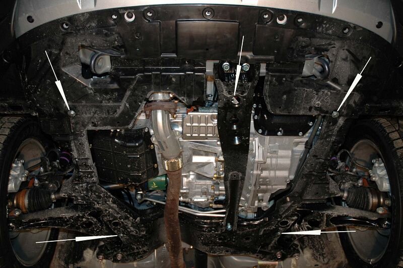 Защита картера предотвращает механические повреждения, попадание пыли, влаги и грязи на узлы и агрегаты в моторном отсеке. Крепление осуществляется только в штатные отверстия с использованием качественного крепежа.