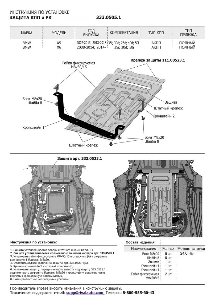 Покупатели, которые приобрели Защита КПП и РК Rival для BMW X5 F15 (xDrive30d, xDrive40d, xDrive25d) 2013-2018 (устанавл-ся совместно с 333.0508.1), штампованная, алюминий 3 мм, с крепежом, 333.0505.1, также купили
