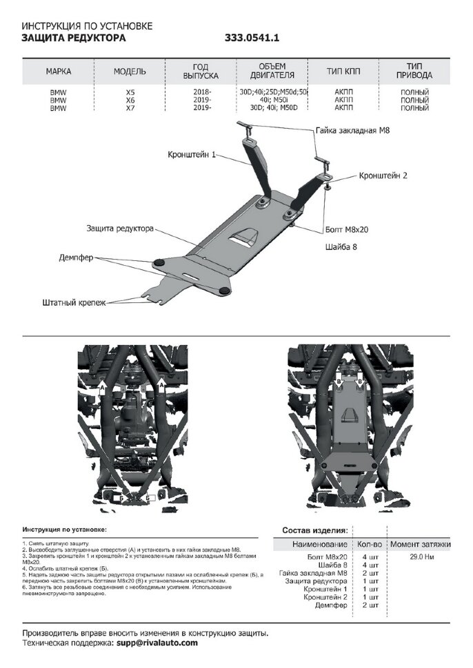 Покупатели, которые приобрели Защита редуктора Rival для BMW X5 G05 (xDrive 25d) 2018-н.в., алюминий 3 мм, с крепежом, 333.0541.1, также купили