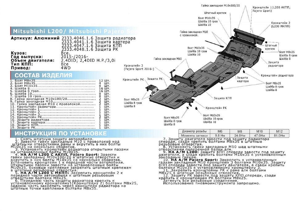 Mitsubishi Pajero Sport III (V - 2.4D; 3.0) 2016-2021 2021-н.в.