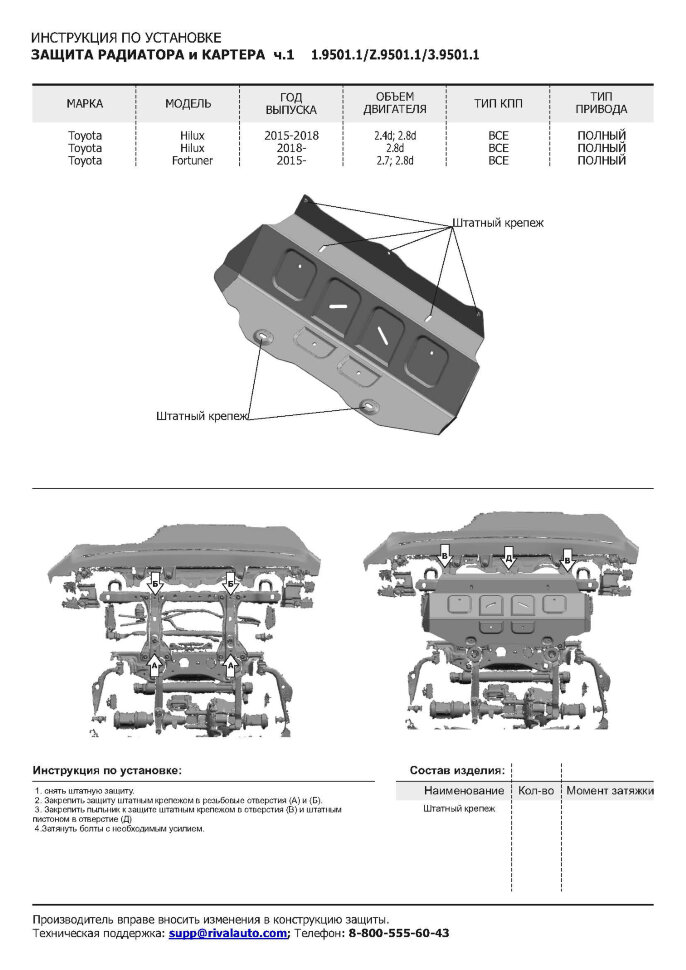 - Резиновые вставки предотвращают возникновение вибраций и, как следствие, посторонних шумов в возможных местах соприкосновения защиты с автомобилем.